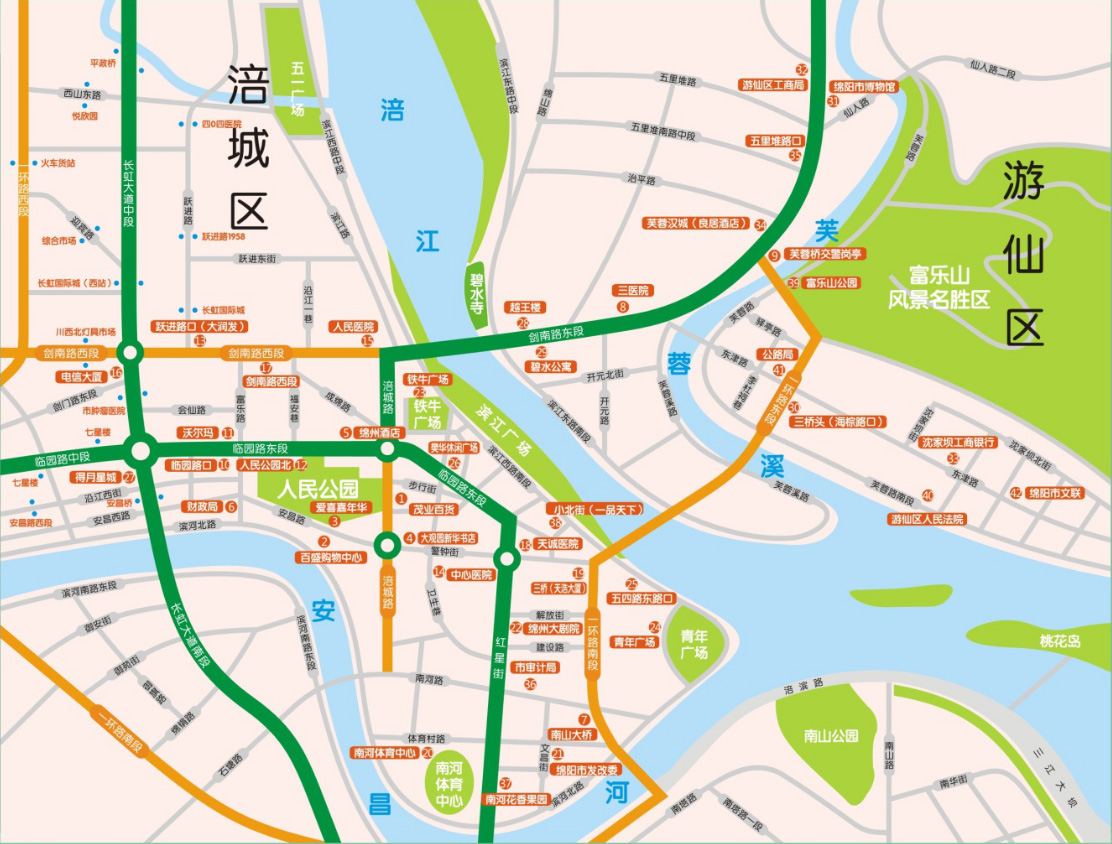 綿陽市公共自行車站臺(tái)燈箱分布圖