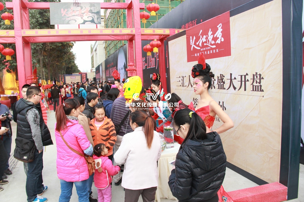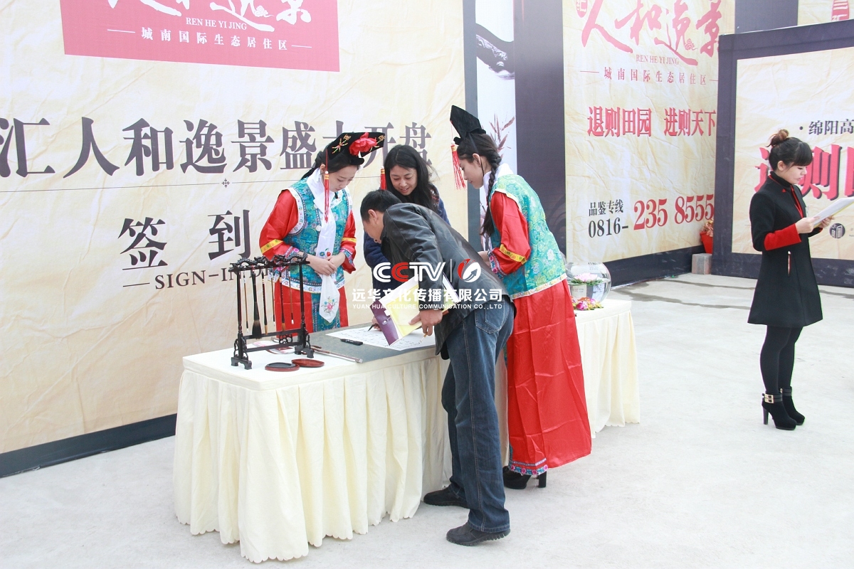 現場環境展示是提高轉定成交率和吸引新客戶的重要亮點,本次活動充分結合了中國風的主題元素,以項目主題色為主,采用燈籠、宮燈、毛筆架等元素,設置一些互動游戲及禮品,營造現場的客戶體驗。將項目中國風的特色融入到整個活動中,通過人員、物料、節目、互動方式等一系列形式予以體現,做到了本次活動新穎且不落俗套。