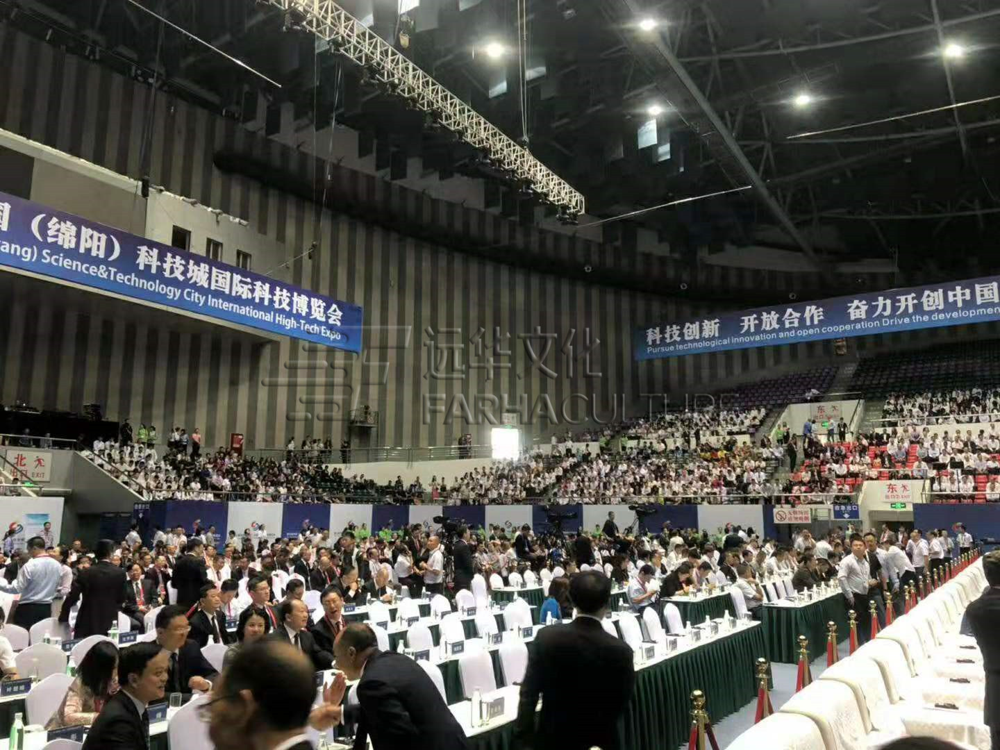 遠華國際文產集群旗下的華美聯行公關作為此次科博會策劃活動會展布置服務中標合作單位,從創意籌備、策劃布展到現場活動管控,華美聯行及合作單位的每一步工作,每一位工作人員,都為綿陽科博會的的順利舉行“保駕護航”。