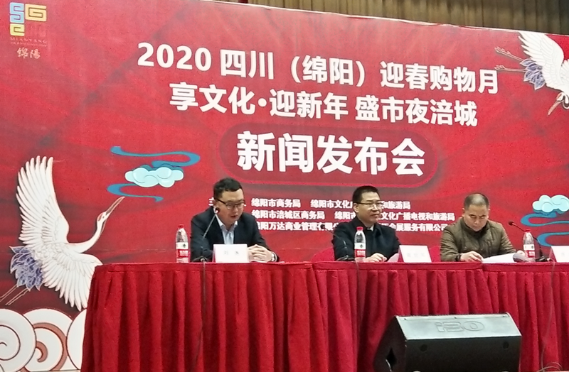 2019年12月6日,由綿陽市商務局、綿陽市文化廣播電視和旅游局主辦,綿陽市涪城區商務局、綿陽市涪城區文化廣播電視和旅游局協辦,綿陽萬達廣場商業管理有限公司、四川騰邁會展服務有限公司聯合承辦的“2020四川(綿陽)迎春購物月暨享文化•迎新年盛市-夜涪城”的新聞發布會在涪城區文化中心舉行。